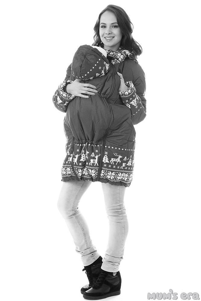 Собранный на резинку низ куртки защищает от ветра, что особенно важно при ношении с ребенком.