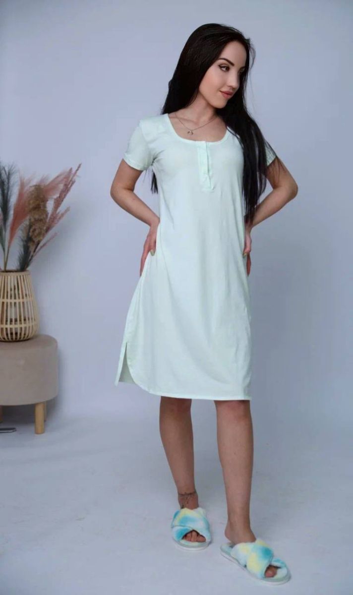 Сорочка из хлопкового трикотажа (пенье) с коротким рукавчиком и с хорошим запасом на животик.