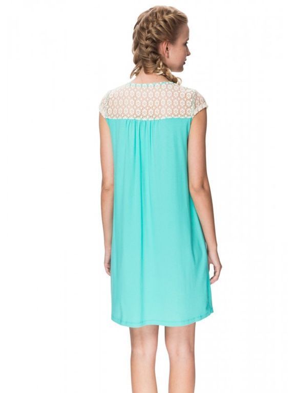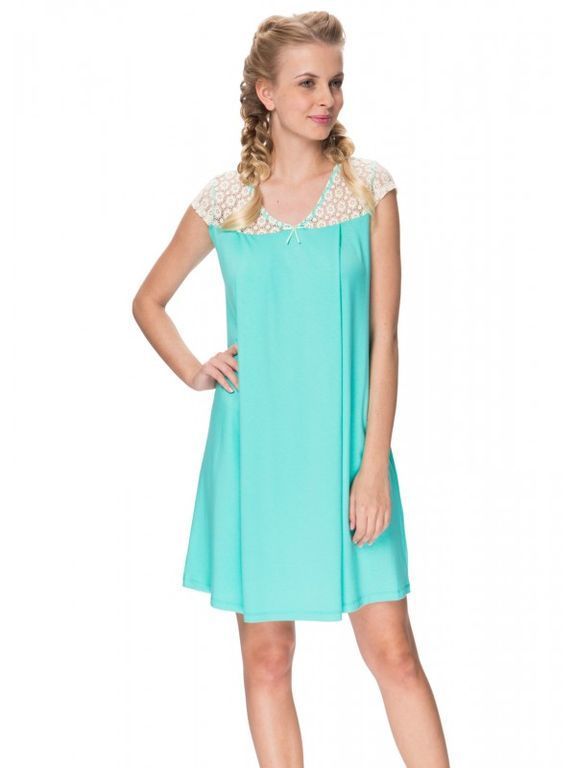 Сорочка сшита из мягкой трикотажной вискозы, имеет кружевную отделку на плечах и груди.