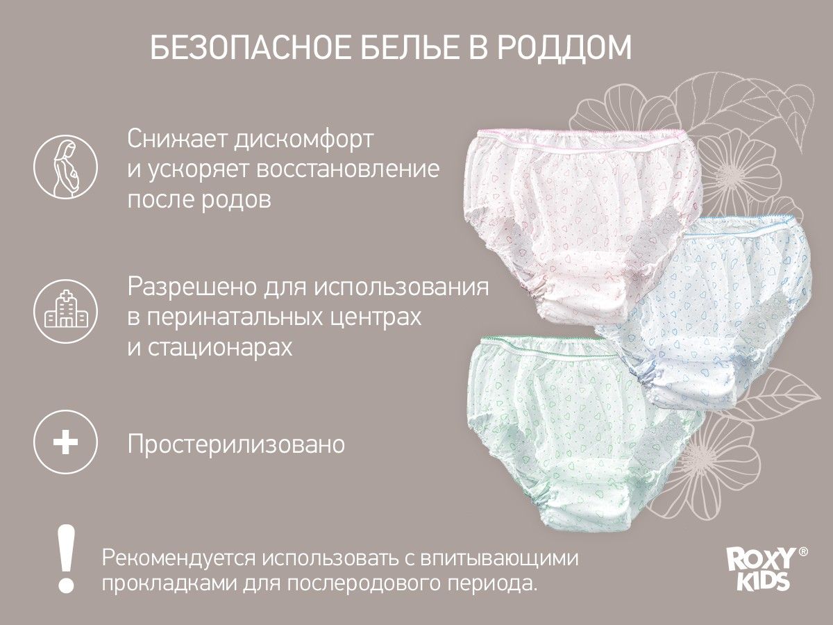 Гигиенические трусы ROXY-KIDS для одноразового использования разработаны специально для послеродового периода и выполнены из медицинского спанбонда, который сочетает дышащие свойства и высокое сцепление с клеевым слоем послеродовой прокладки.