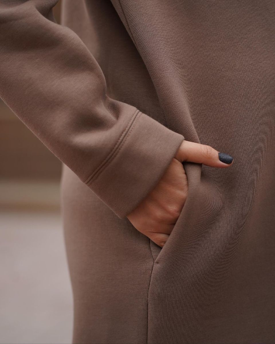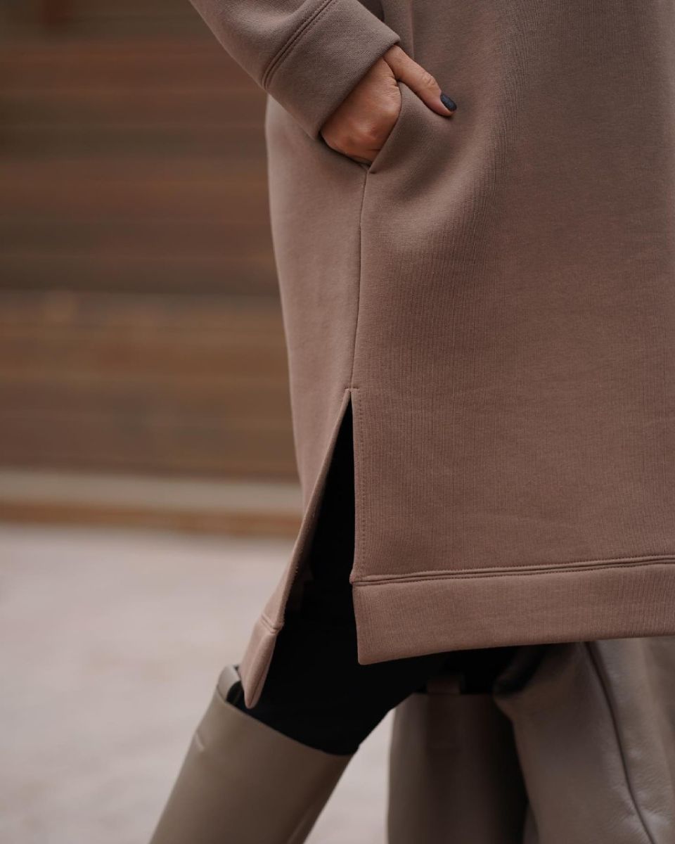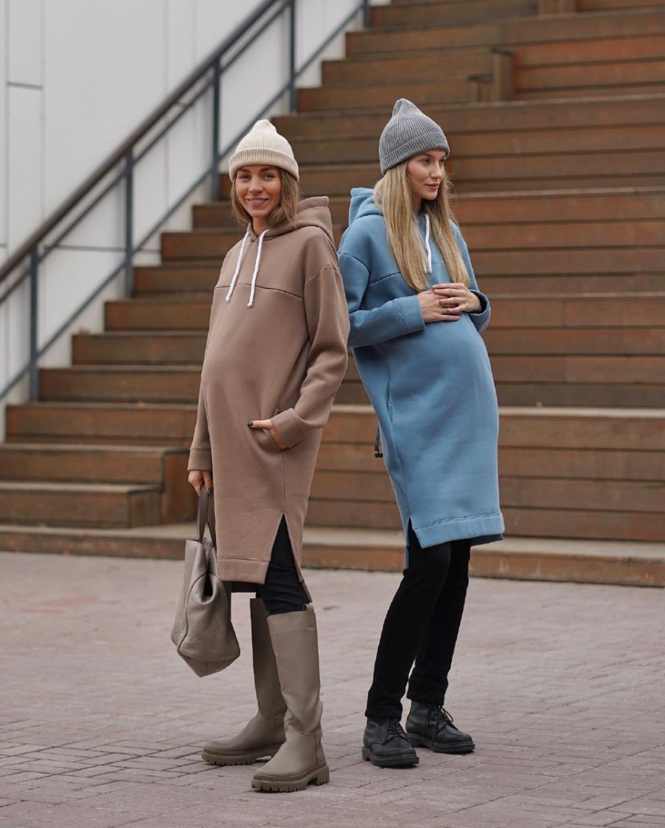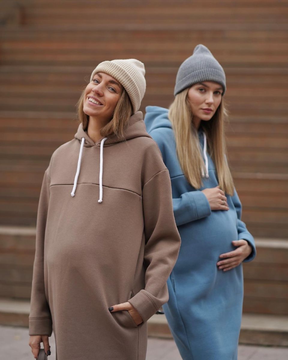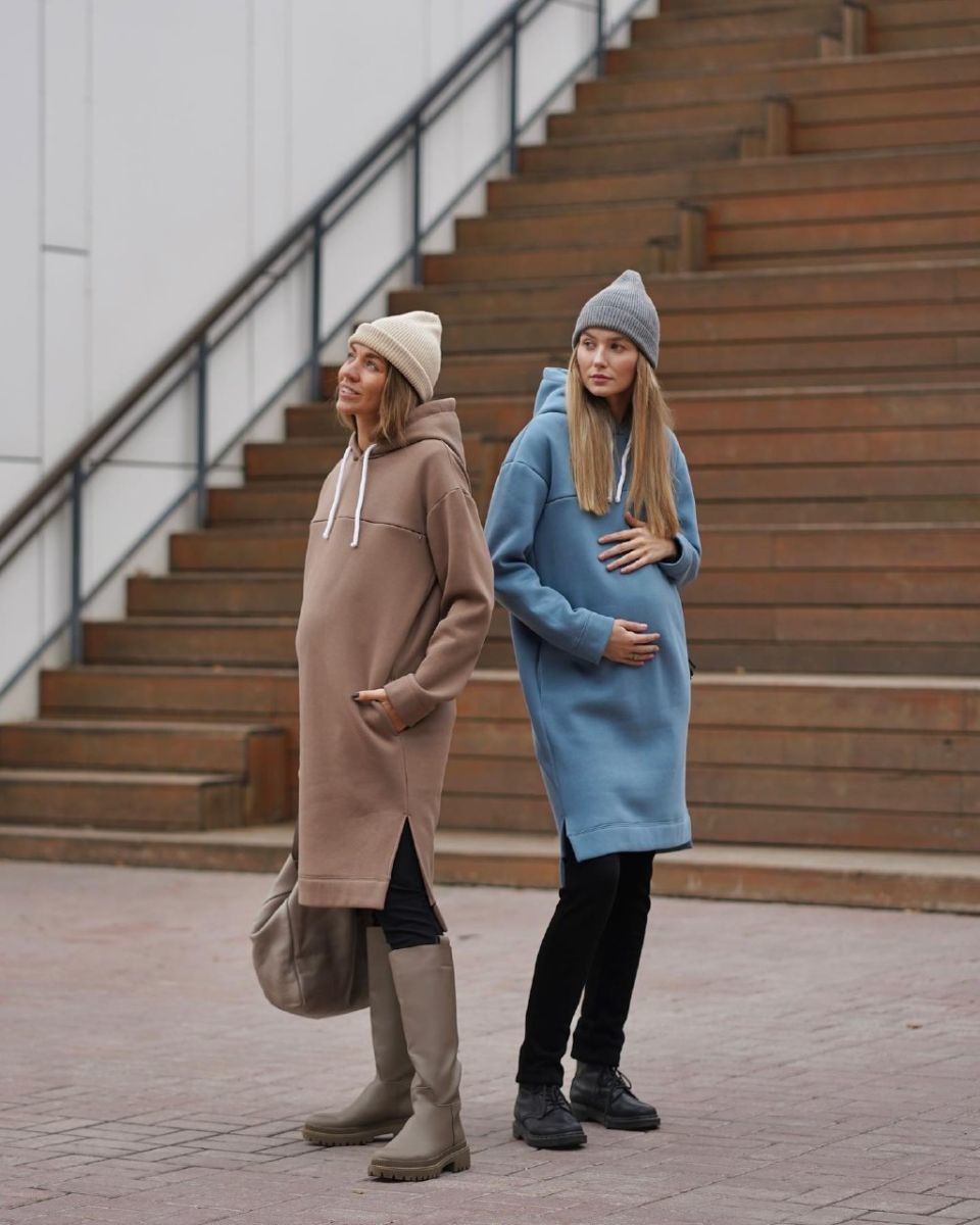 Длинная и очень теплая туника из футера с начесом с капюшоном. По полочке кокетка, в которой спрятана молния для кормления.