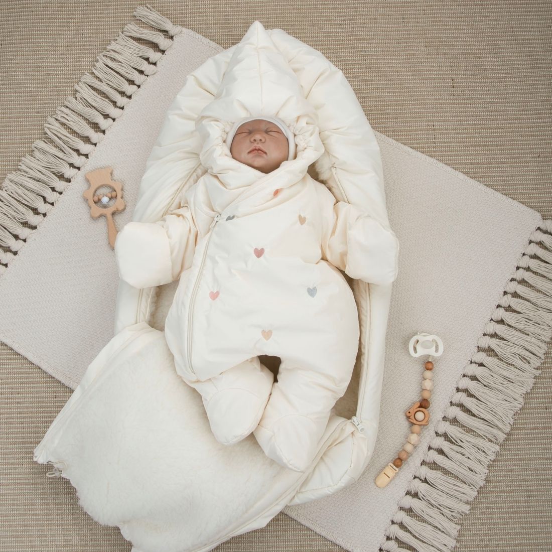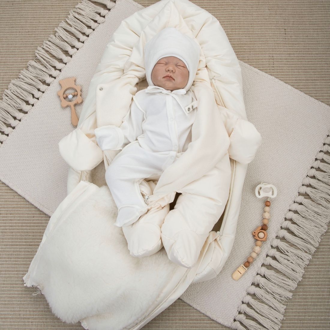 Зимний комплект на выписку 5 предметов «Акварель.Вышивка» с теплым меховым конвертом на молнии.