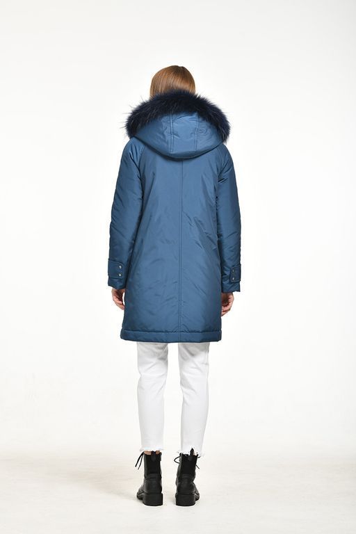 Парка 2 в 1, длина до колена, прямого силуэта. Застежка – молния, ветрозащитная планка, воротник стойка со съемным капюшоном, с мехом натурального енота, мех съемный. 4 кармана, широкая пата на рукаве. Плотная ткань 100% полиэстер FitSystems WR с ветрозащитной и с влагозащитной пропиткой. Дополнительный объем дает съемная вставка на живот.